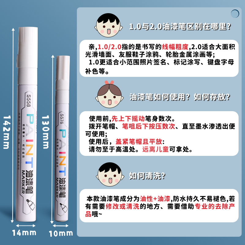 得力油漆笔防水防油不掉色记号白色金色补漆油性汽车工地专用黑色的工业速干白漆笔银色描胎轮胎涂鸦红色描边