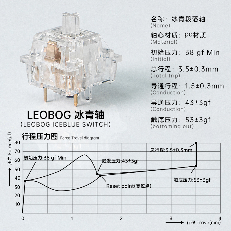 LEOBOG冰青轴全透明厂润有声段落轴HIFI客制化热插拔机械键盘轴体