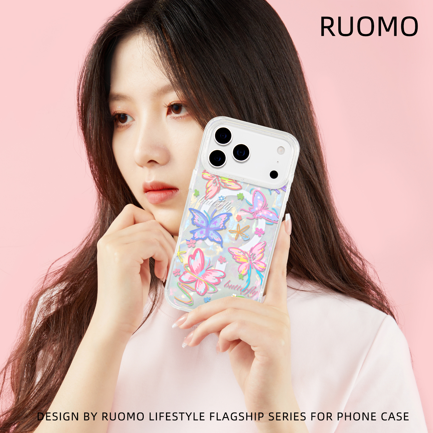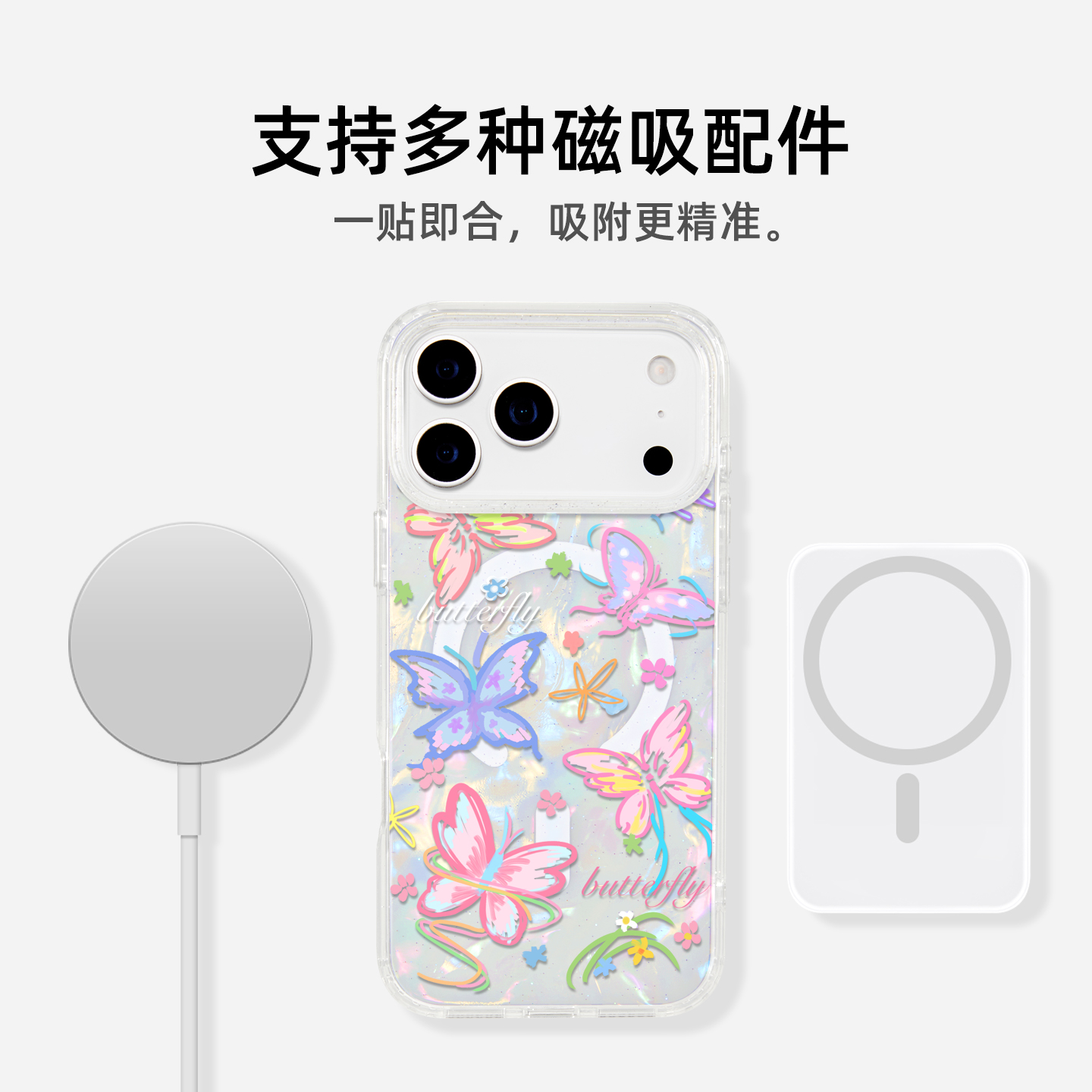 若墨适用苹果17promax手机壳新款iphone16pro女15贝壳纹磁吸13高级感14小众magsafe创意ins风蝴蝶ip保护套