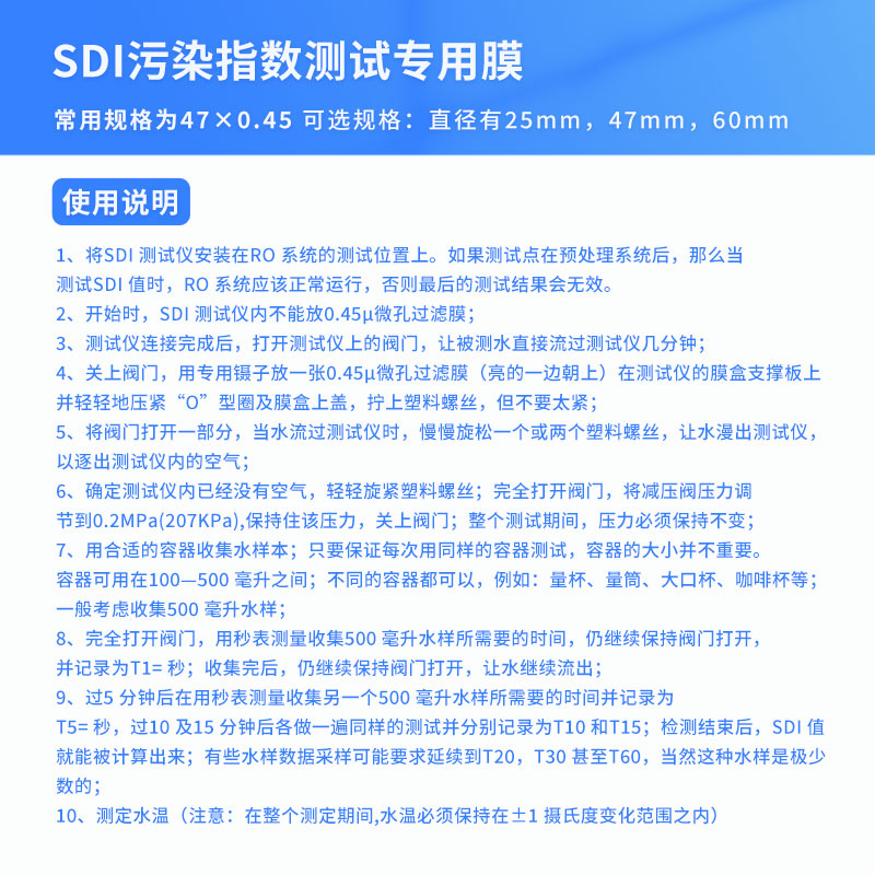 SDI微孔滤膜反渗透水质污染指数测试仪检测仪专用滤膜47mm 0.45um