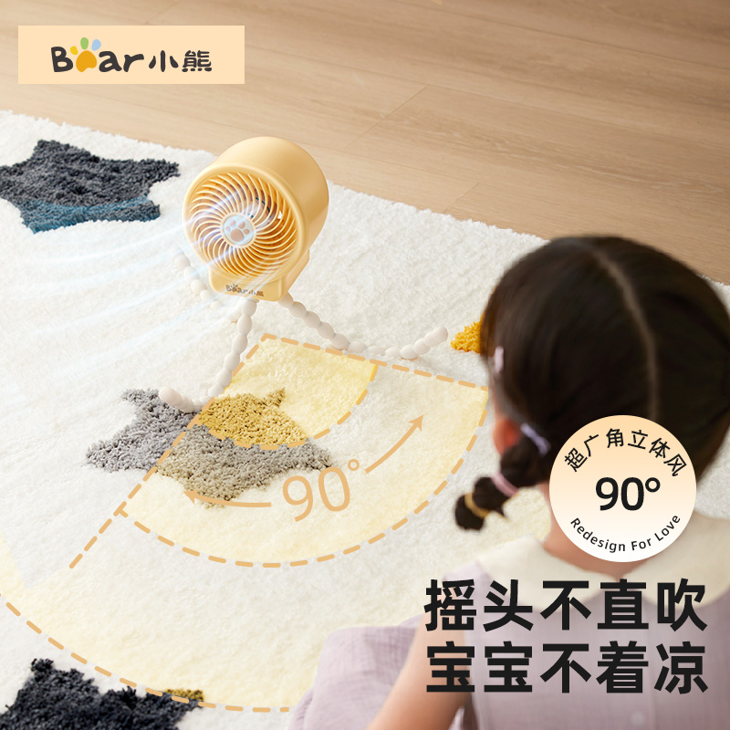 【下拉淘金币】小熊婴儿车风扇八爪鱼风扇手持便携式充电轻音户外儿童宝宝手推车溜娃小风扇自动摇头USB充电