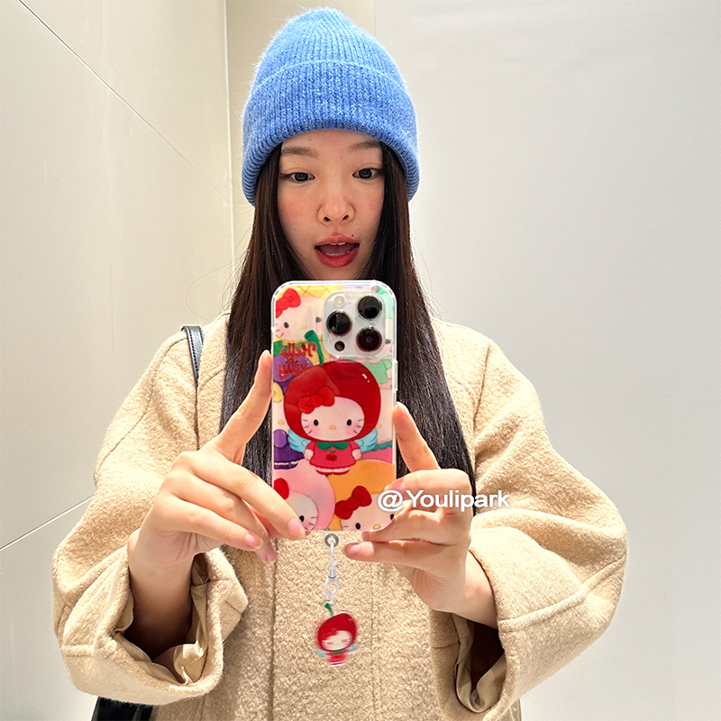 由里公园ins卡通可爱少女心樱桃猫咪挂件15适用16pro苹果16ProMax手机壳iPhone16全包14韩系14Promax保护套13