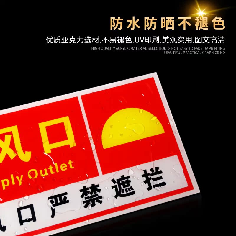 亚克力风机严禁送风口遮挡正压出风口标识牌提示牌标志排烟口贴纸送风口贴纸消防机械定制标识牌警示牌标示牌