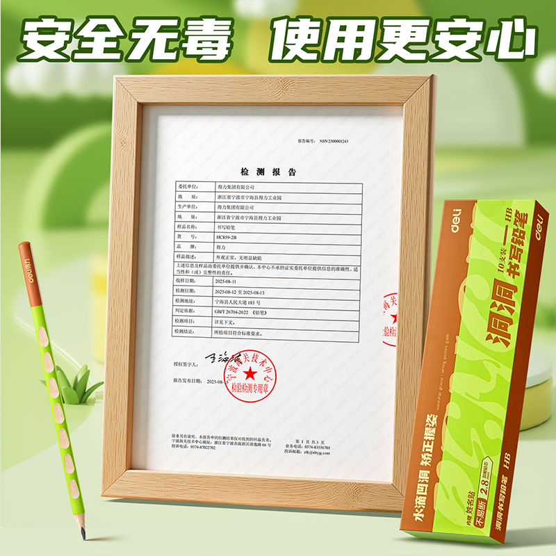 得力洞洞铅笔一二年级小学生专用幼儿园初学者专用无毒加粗三角杆