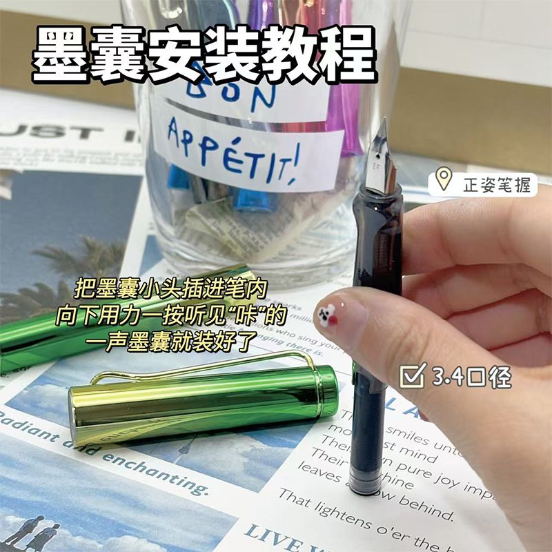 正姿炫彩钢笔学生专用练字三年级可替换墨囊渐层色0.38mm钢笔