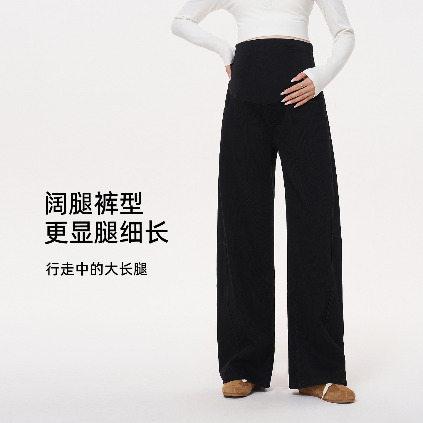 十月结晶孕妇裤秋季小个子垂感阔腿裤松紧腰部无托腹长裤2025新款