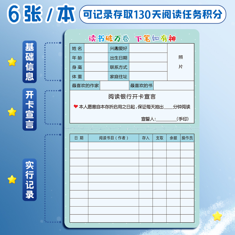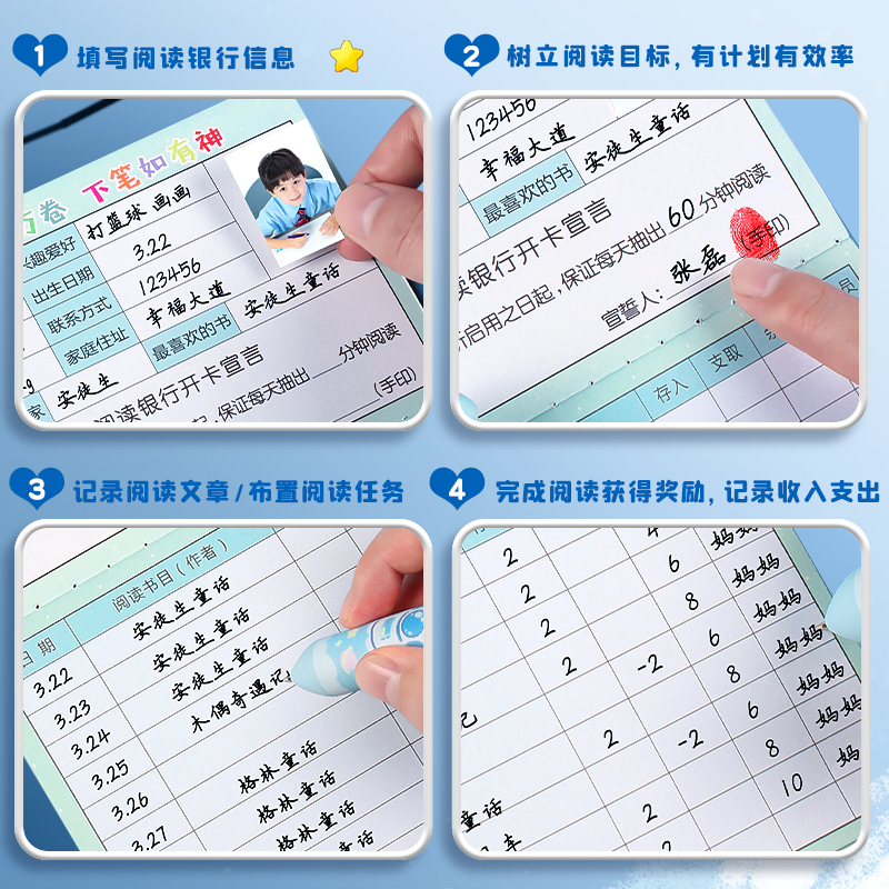 阅读存折打卡积分记录本小学生一年级二三年级阅读记录卡积分本读书登记本儿童孩子奖励积分卡心愿存折积分册