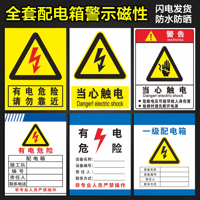 有电危险当心触电警示磁性配电箱机械设备安全标识牌配电柜责任人标志牌小心有电非专业人员禁止操作触摸