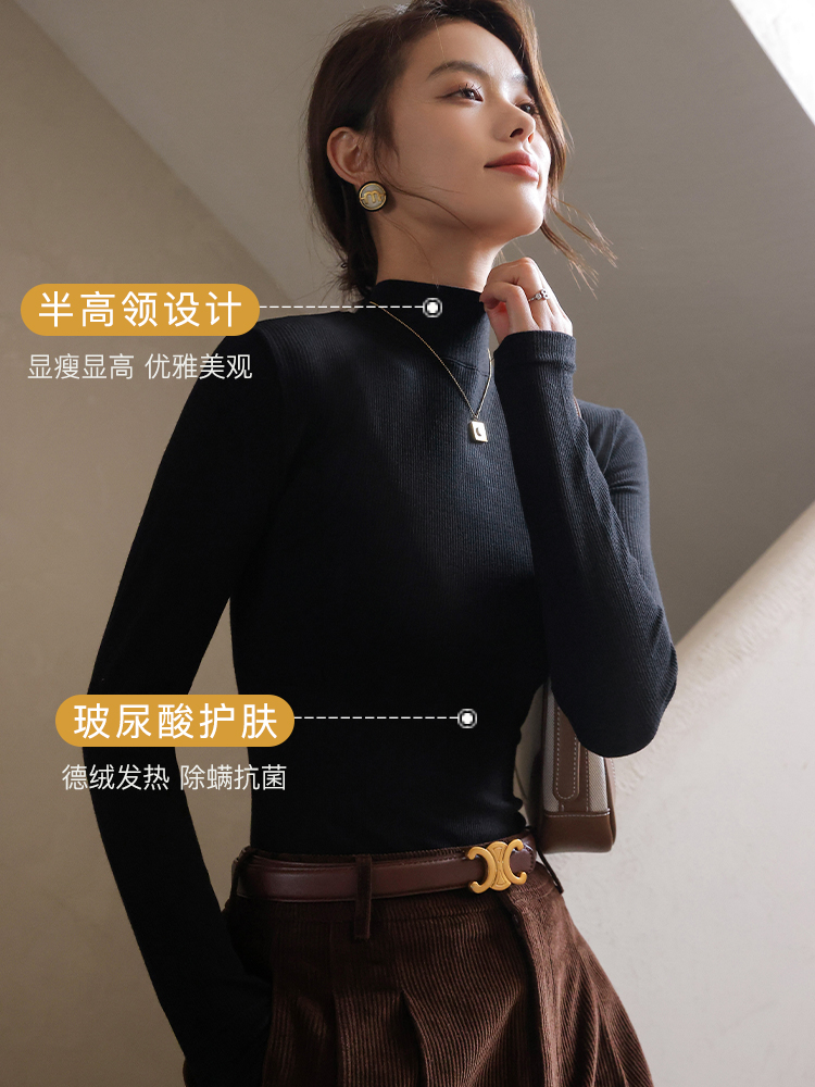 黑色半高领打底衫2025新款女德绒保暖内搭高级感长袖春秋针织衫冬
