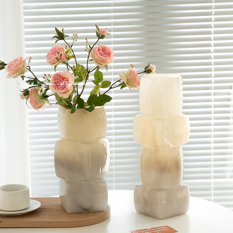 花瓶设计感小众中古琉璃艺术不规则玻璃插花装饰摆件高级感鲜花瓶