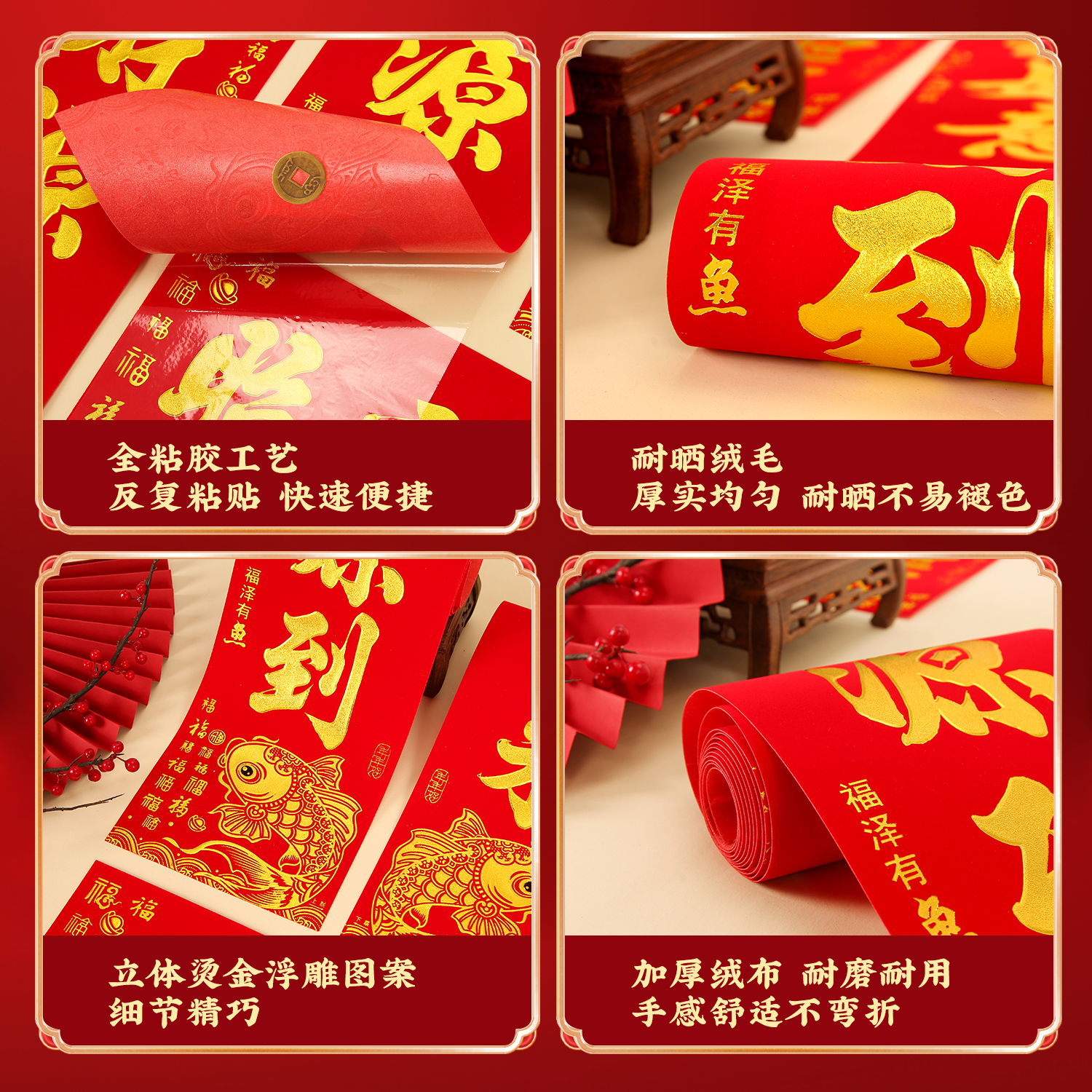 对联2025家用背胶年好新年新春植绒春联春节新款高档绒布大门门贴