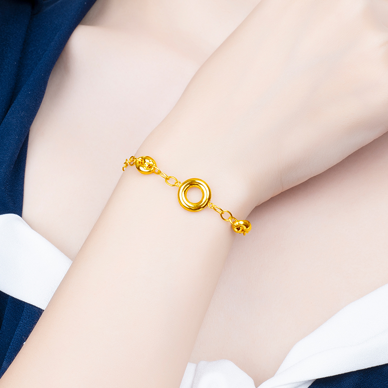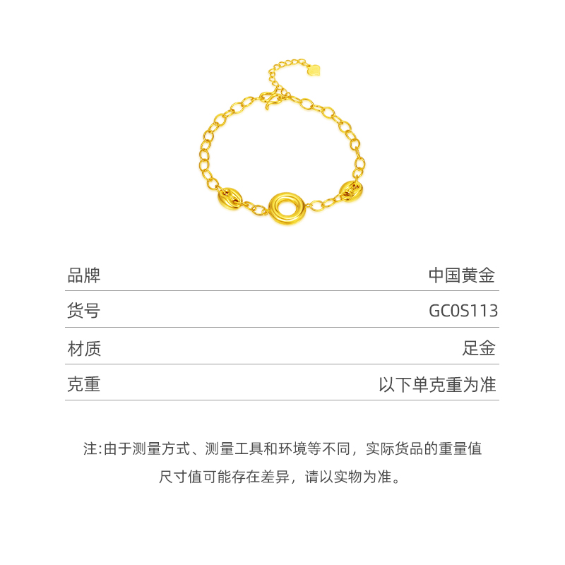 【中国黄金官方店】足金5G金甜甜圈手链可爱送闺蜜送女友黄金