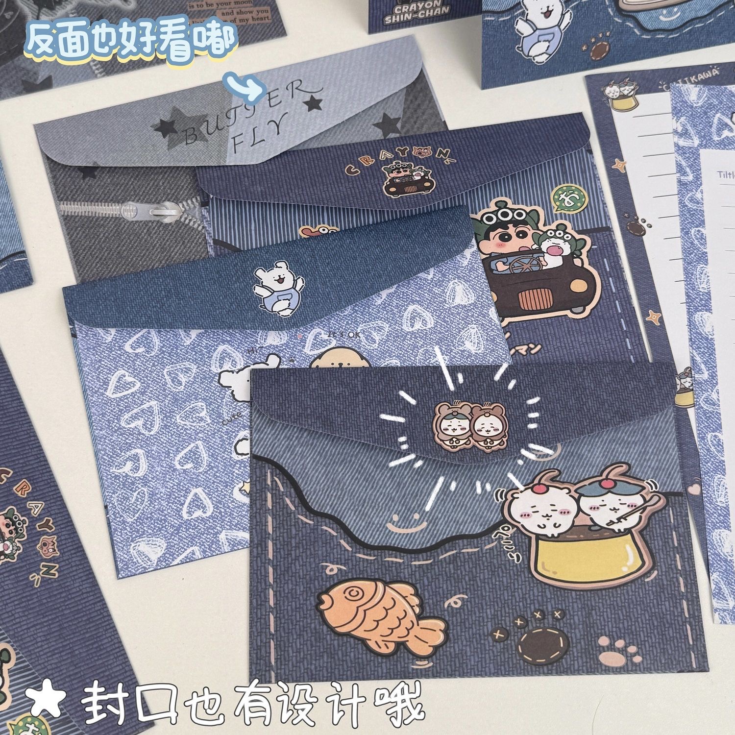 创意牛仔风信封混搭蜡笔小新高颜值ins祝福纪念礼物手写信笺合集