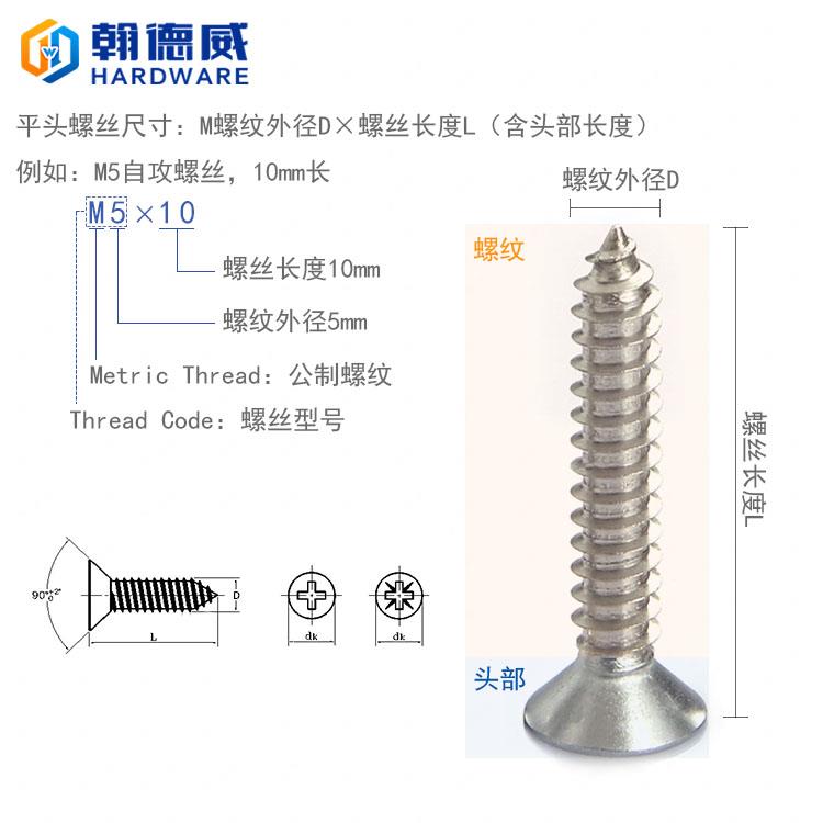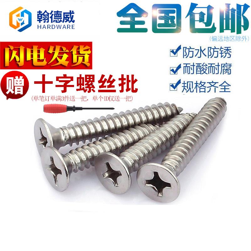 304不锈钢沉头自攻螺丝平头十字木螺钉加长螺丝钉M3 M4 M5*6*8*10