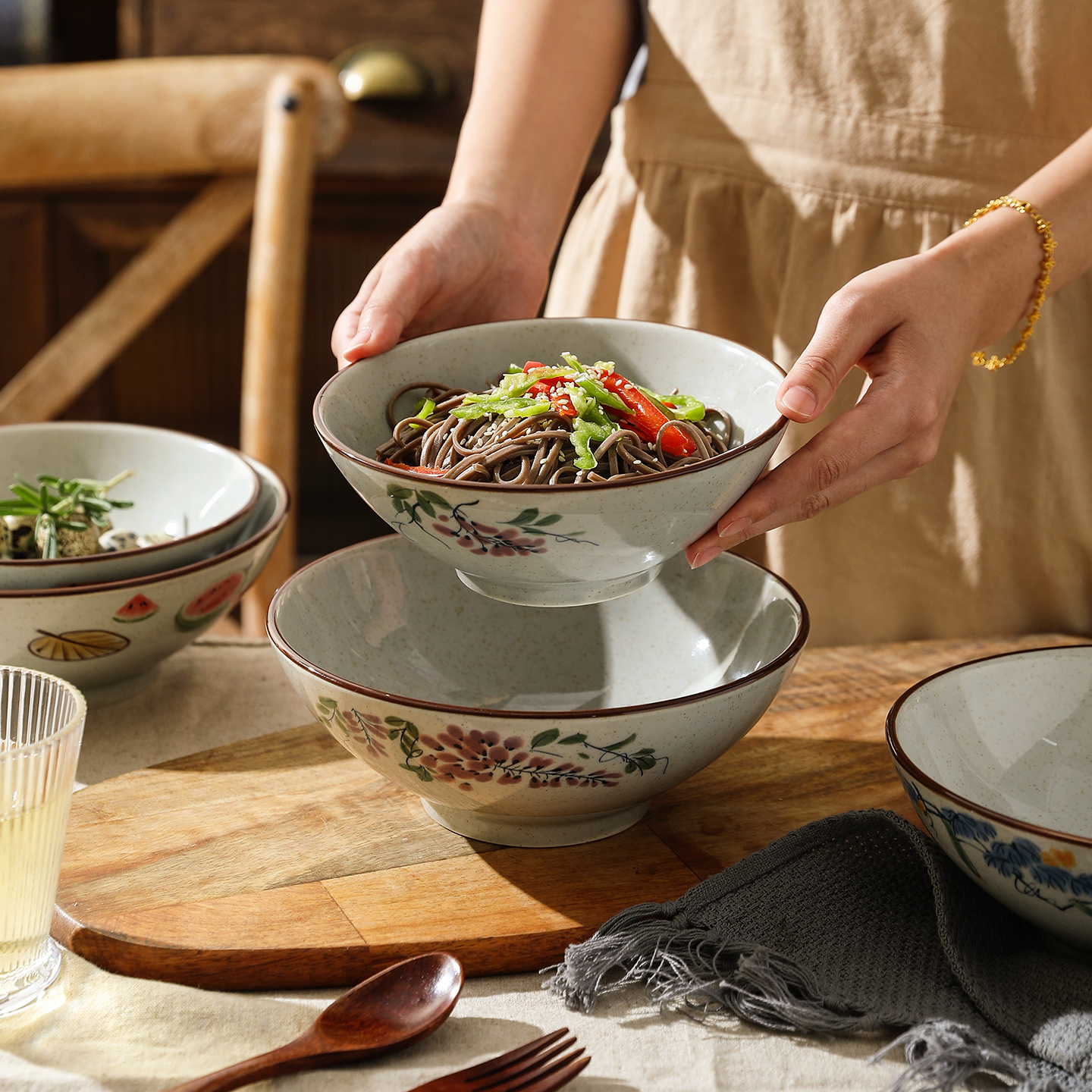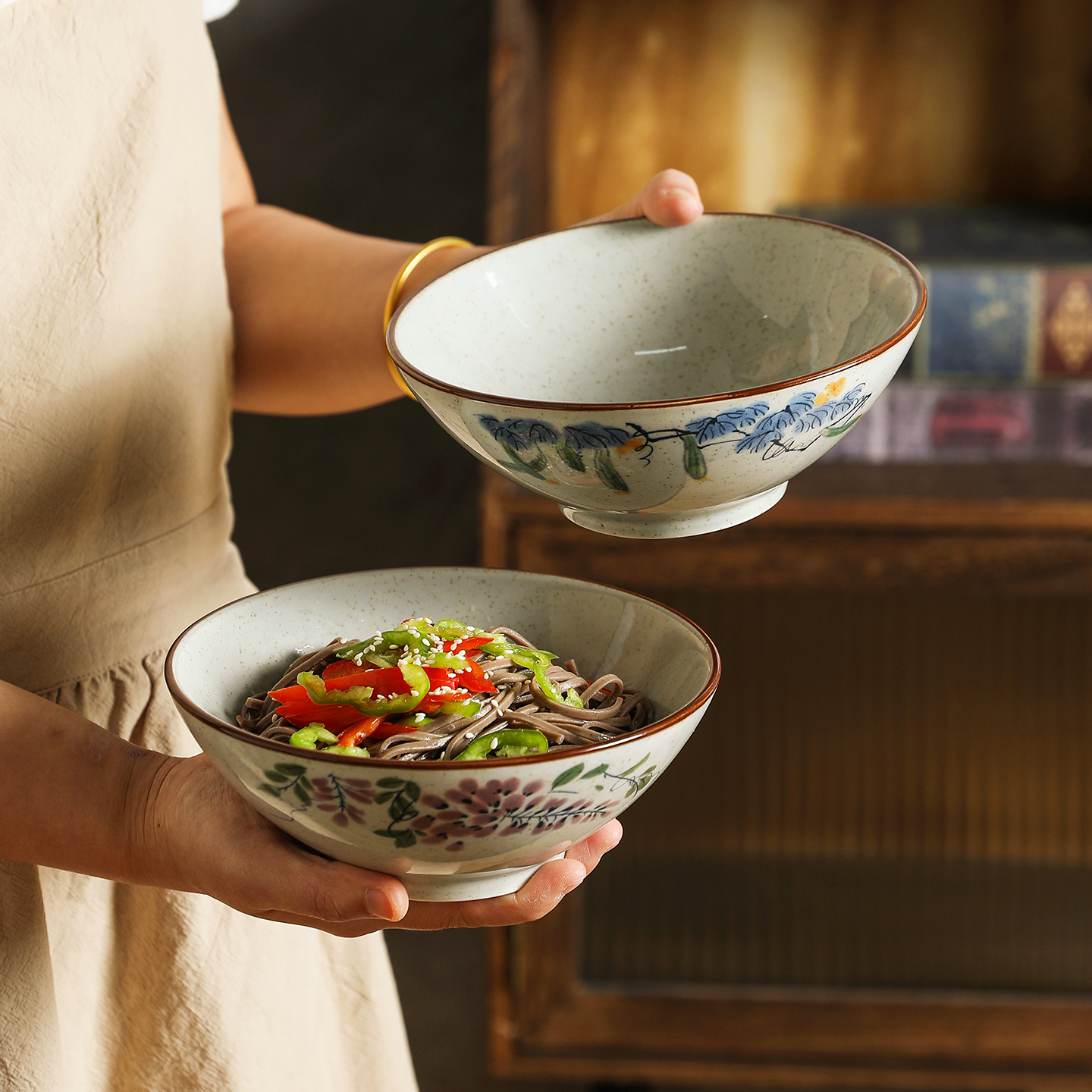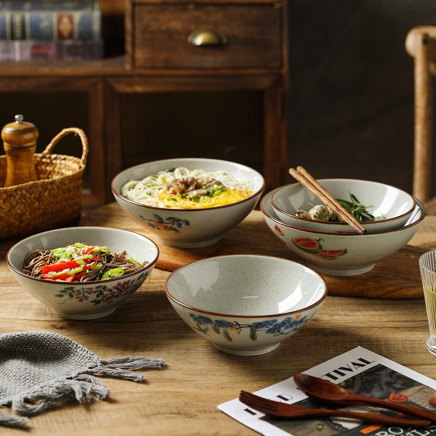 舍里中式陶瓷面碗家用釉下彩大容量拉面碗汤碗复古斗笠碗螺蛳粉碗