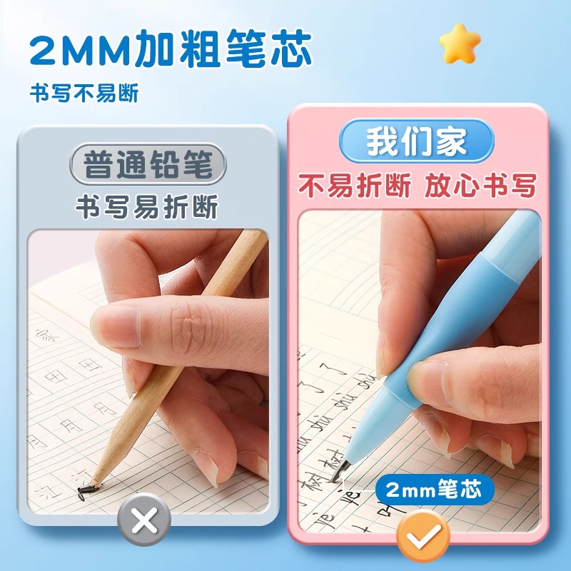 海豚正姿铅笔自动铅笔小学生用2.0不易断芯自带卷笔刀的自动笔一年级初学者二年级矫正握姿粗杆胖胖写字加粗