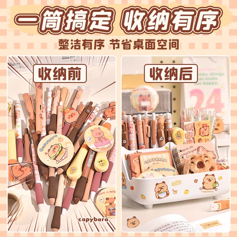 加入豚门!卡皮巴拉笔筒收纳盒大容量儿童学生笔桶高颜值男孩女孩办公室桌面放笔的置物架高级感高颜值ins风