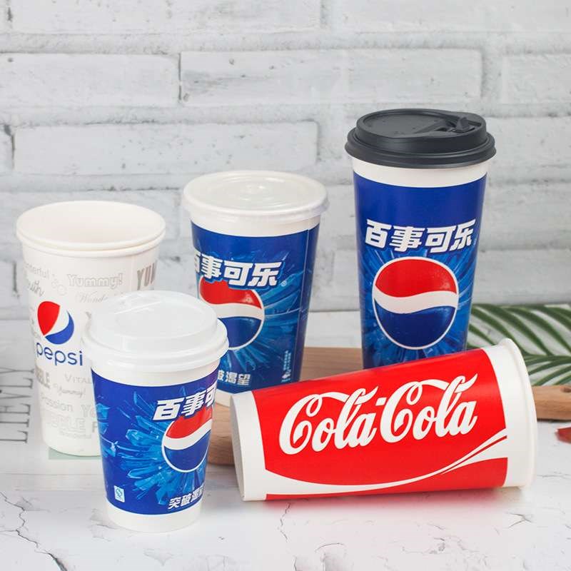 500毫升可乐杯一次性纸杯商用不能封口1000可乐吸管杯带盖冷饮杯