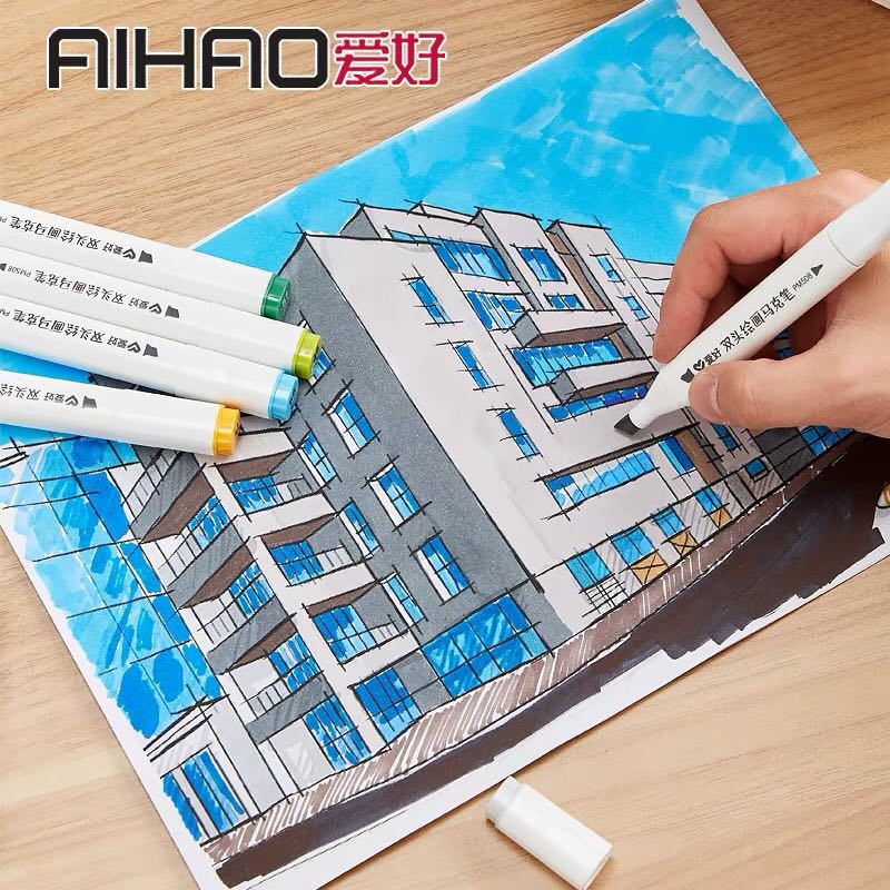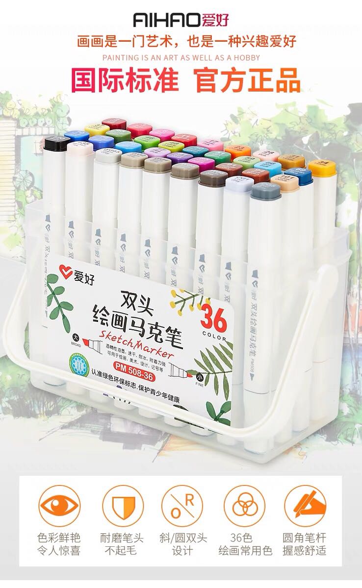 爱好酒精性油墨双头马克笔手绘设计套装学生彩色笔12/18/24/36色