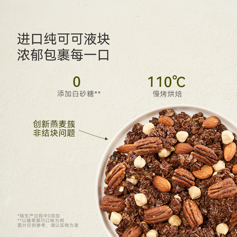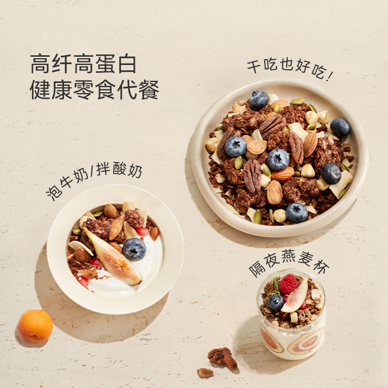 ohmyfood格兰诺拉榛果黑巧克力可可烘焙燕麦片坚果代餐即食早晚餐