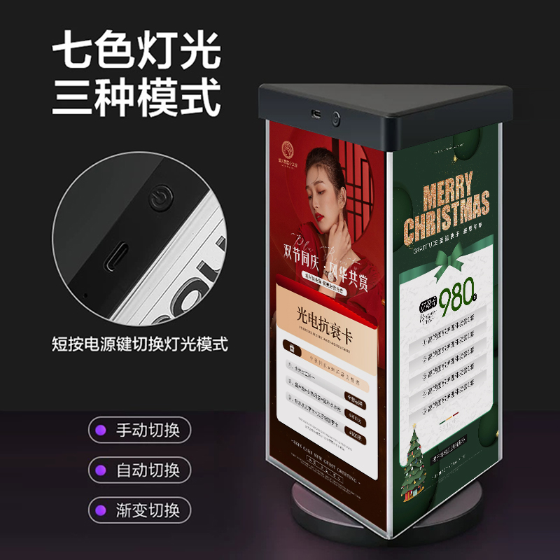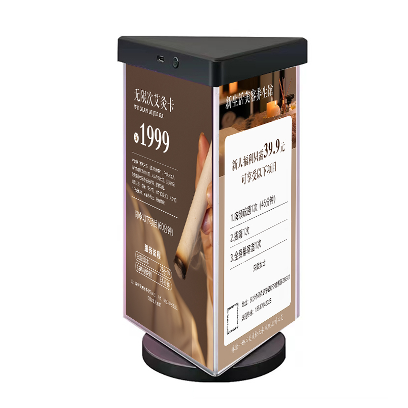 美容院价格表定制美甲台牌展示牌美睫足浴足疗三面旋转LED充电发光摆台酒店采耳店养生SPA台卡菜谱设计制作