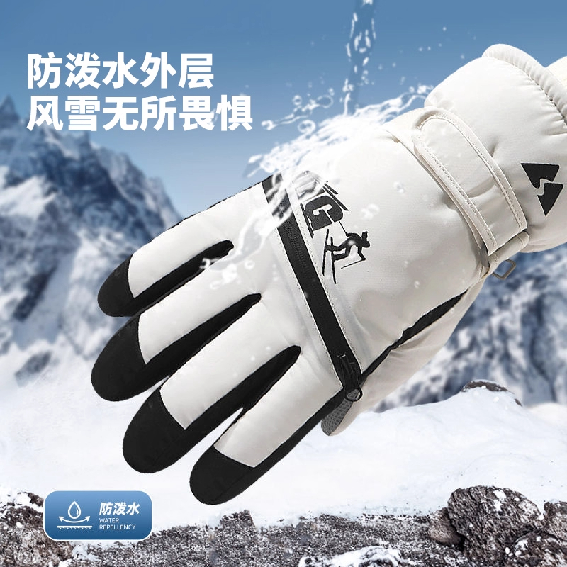 滑雪手套男女冬季可触屏骑行保暖东北防寒防泼水加绒厚电动车手套