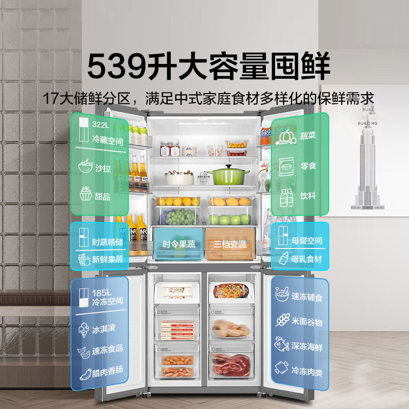 海尔统帅539L冰箱十字对开四门大容量家用一级风冷无霜官方旗舰店