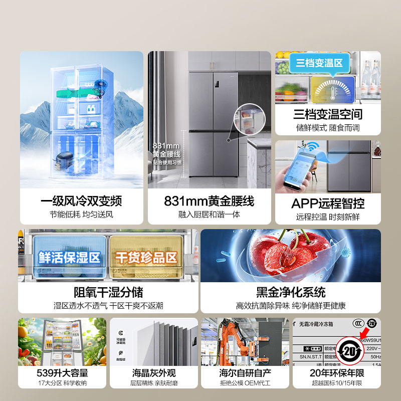 【李佳琦直播间美妆节】海尔539L双开四门一级能效电冰箱