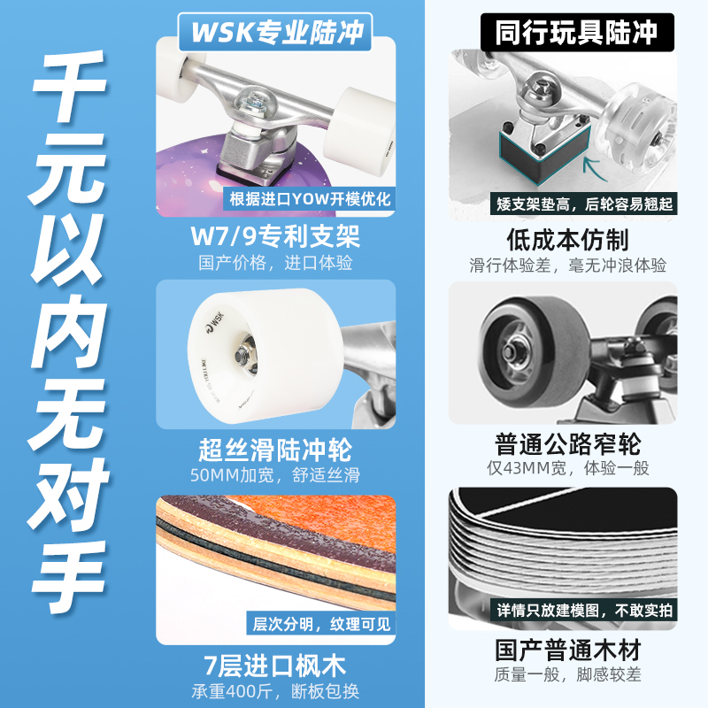 WSK陆地冲浪板滑板初学者专业陆冲板儿童成人滑板车Slide男女生
