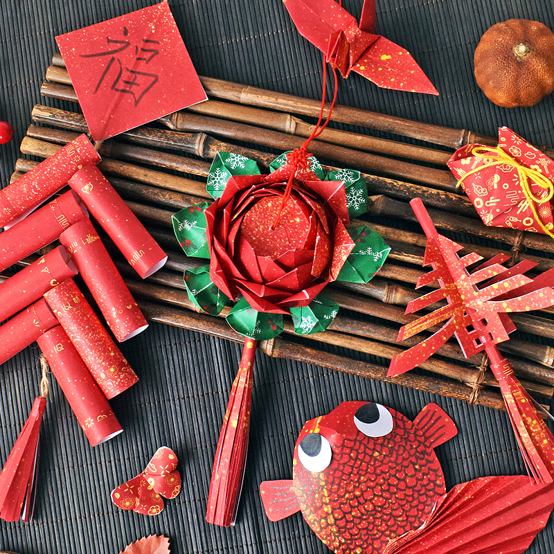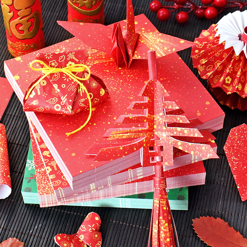 大红喜庆幼儿园折纸专用纸diy节日灯笼荷花吉祥中国风手工用纸