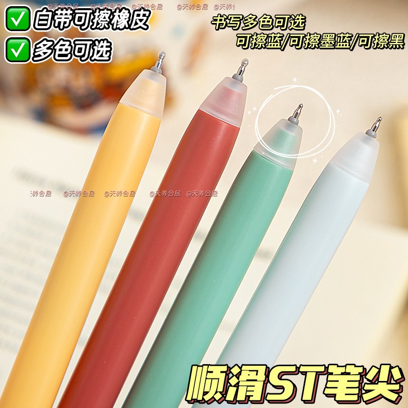 2025新款高颜值女生速干顺滑茶趣扭扭笔小学生三年级专用可擦笔高颜值热敏擦笔黑色晶蓝色