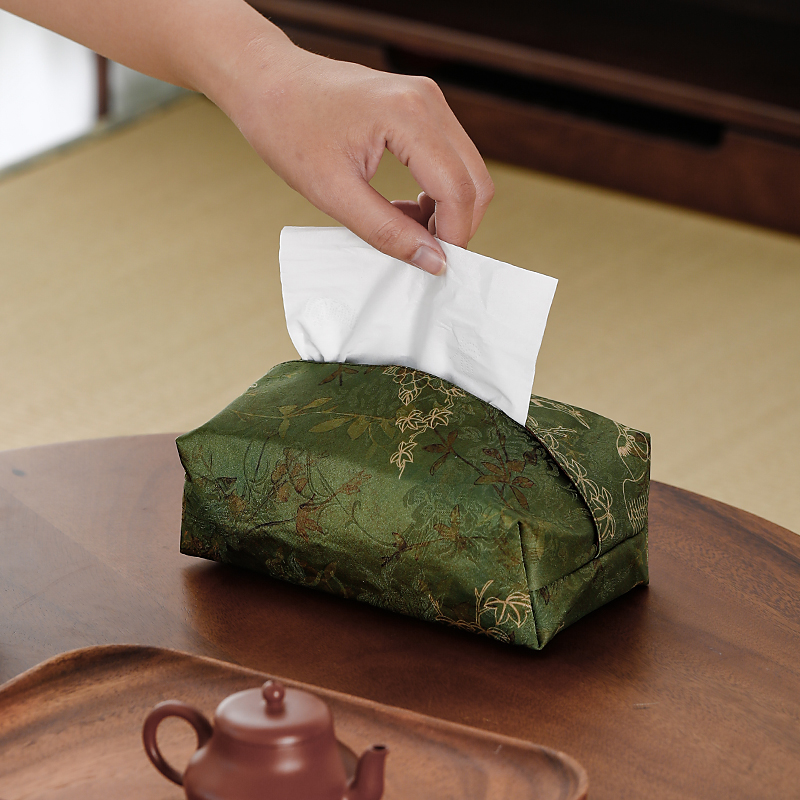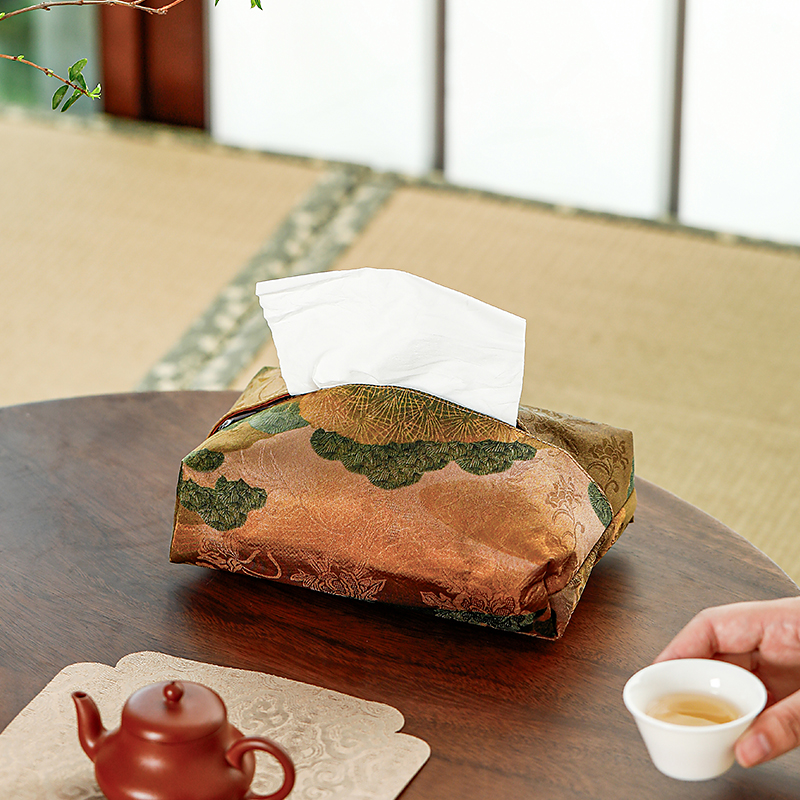 香云纱纸巾盒布艺抽纸盒茶席茶室客厅茶几装饰摆件日用防尘收纳袋