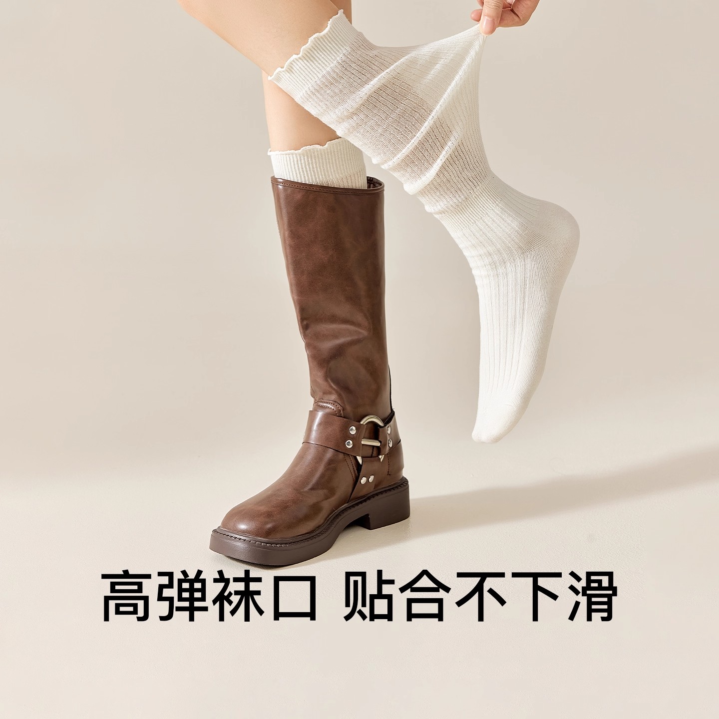 袜子女中筒袜春秋棉质显瘦jk袜白色堆堆袜搭配靴子长筒袜不勒脚