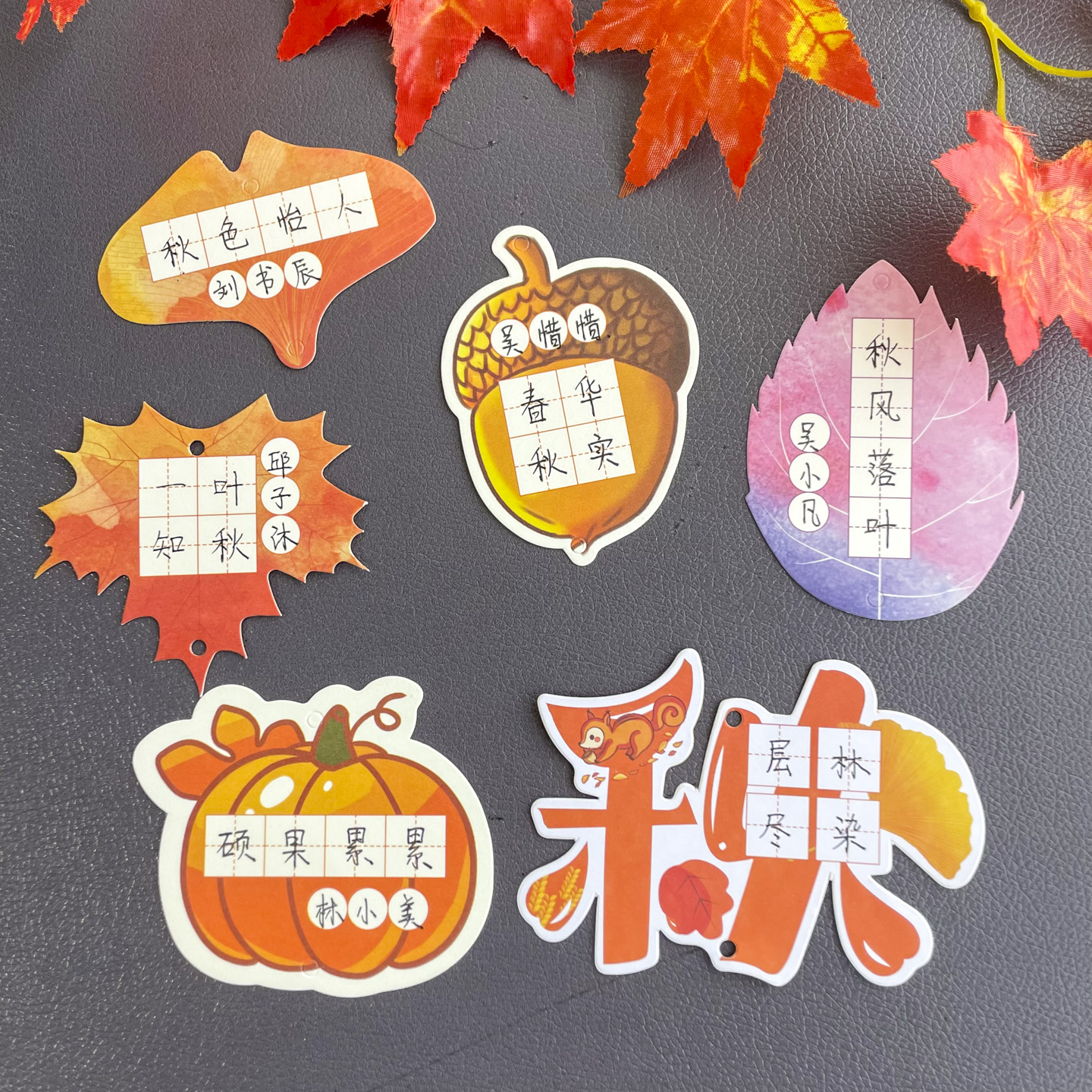 秋天的果实枫叶银杏叶书法书签学生用创意作品纸叶子异形硬笔书写练字卡纸秋日主题幼儿园环创墙装饰挂卡片纸
