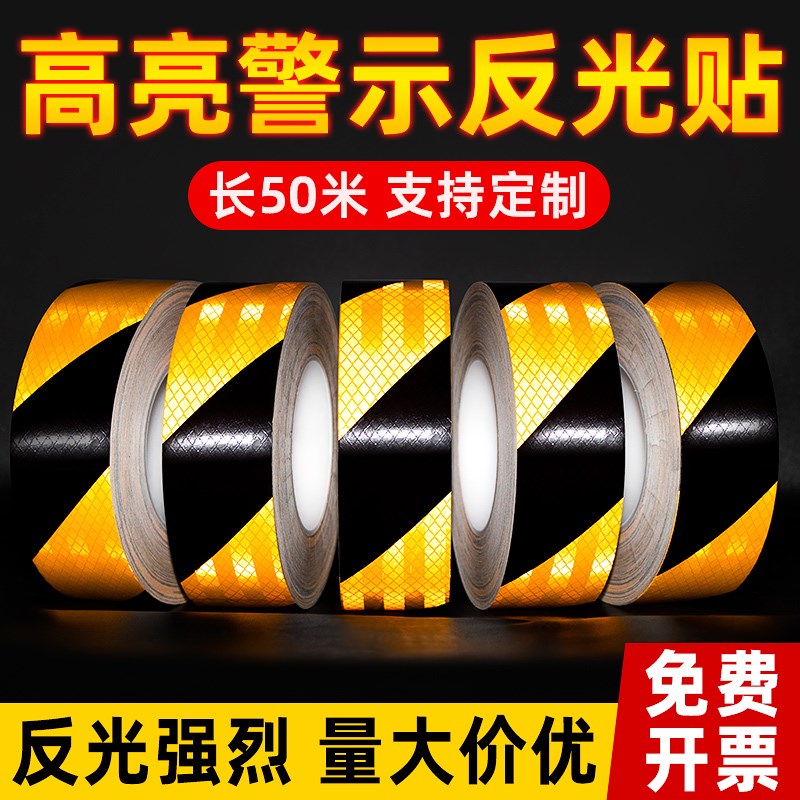 强烈反光高反光警示胶n带黑黄红白高亮斜纹贴条纸夜间交通安全标