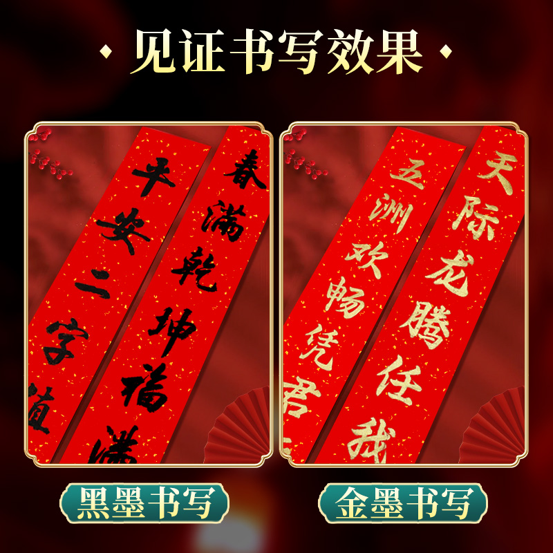2025蛇年万年红洒金纯红对联纸新春空白手写结婚写对联的红纸自写福字过年春节笔墨套装批发毛笔书法宣纸七言