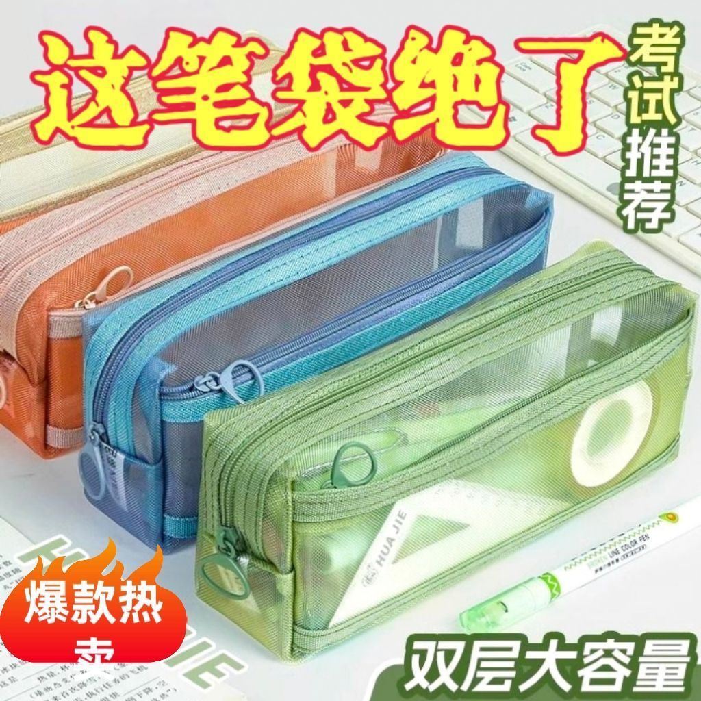 简约透明加厚ins笔袋双层大容量考试开学季文具收纳袋小学生笔袋