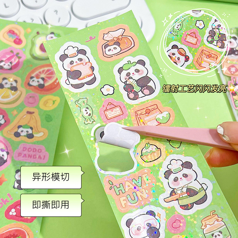 熊猫贴纸镭射咕卡贴纸不重复套装豪华版熊猫花花文创手帐贴纸防水贴画女孩儿童酷卡古卡手账贴纸装饰小图案