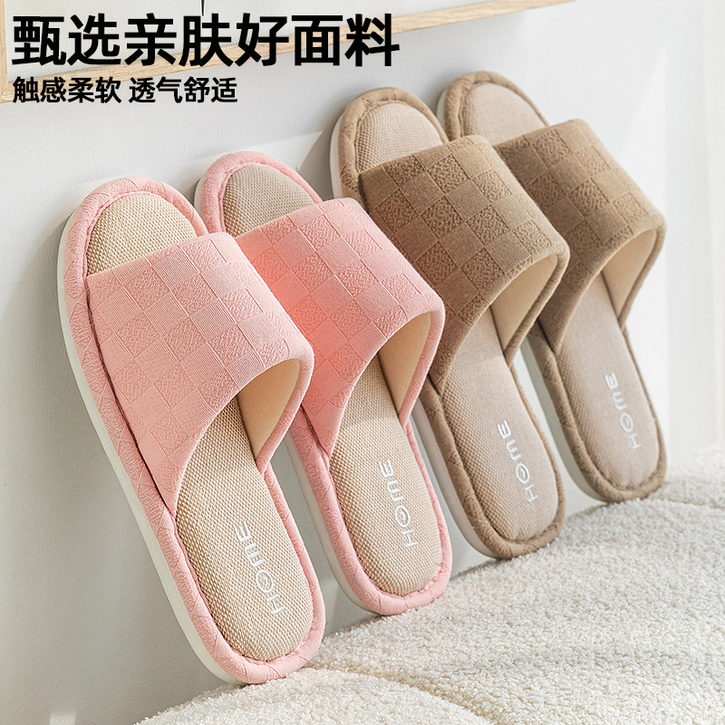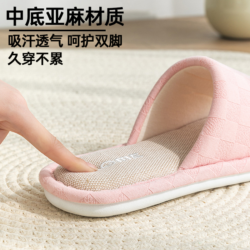 亚麻拖鞋女室内家居家防滑透气家用静音四季地板布棉麻男春秋厚底