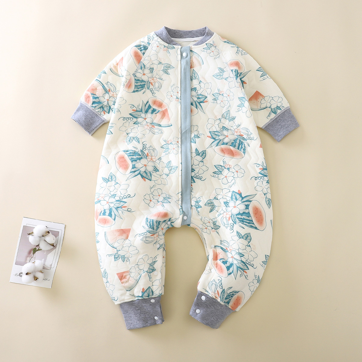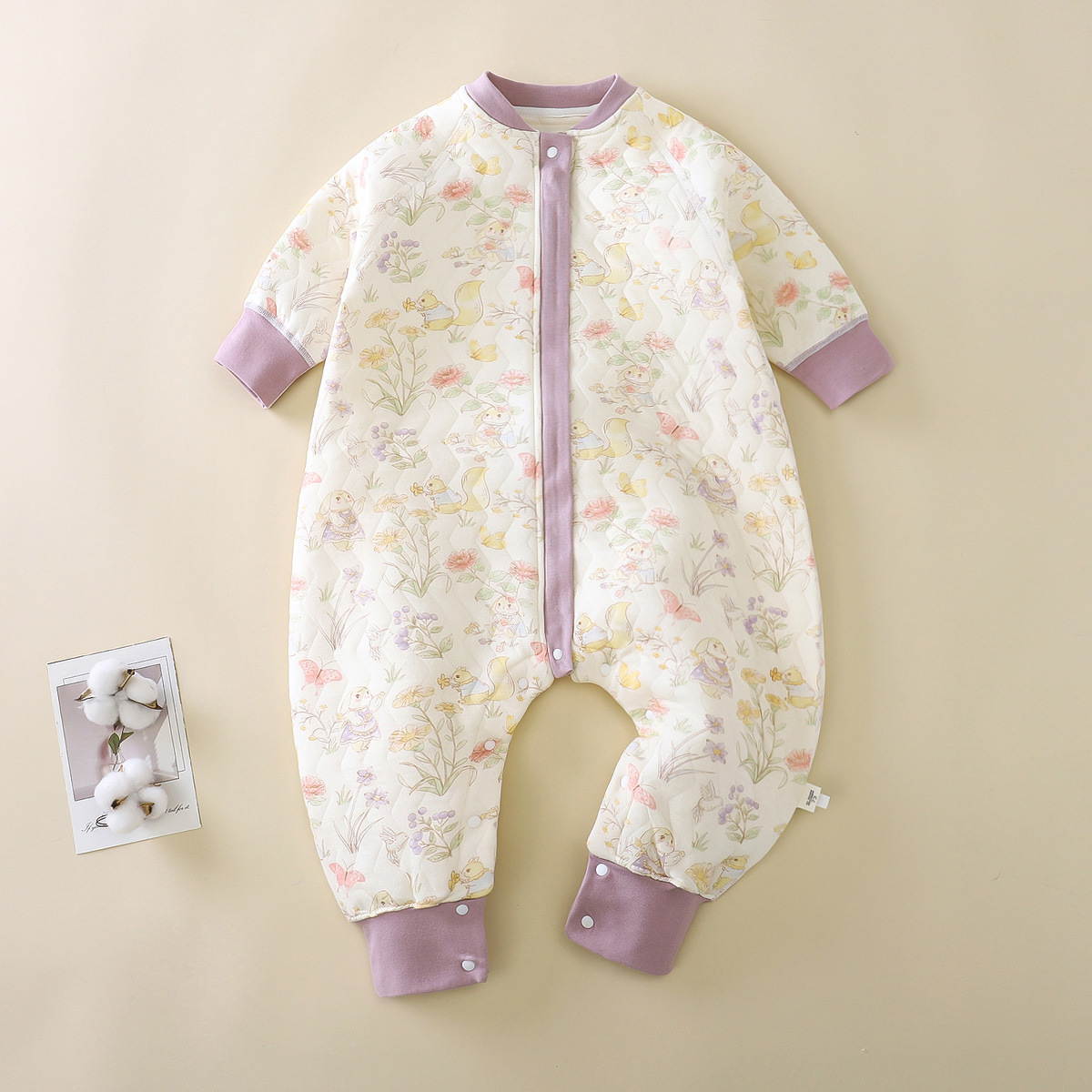 儿童睡袋秋冬款夹棉分腿宝宝纯棉a类爬服婴幼儿防踢被连体衣三层