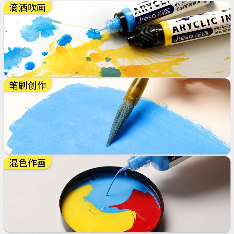 彩研水性颜料马克笔墨水补充液模玩荧光渗线液丙烯颜料高覆盖力手绘涂鸦广告水彩颜料