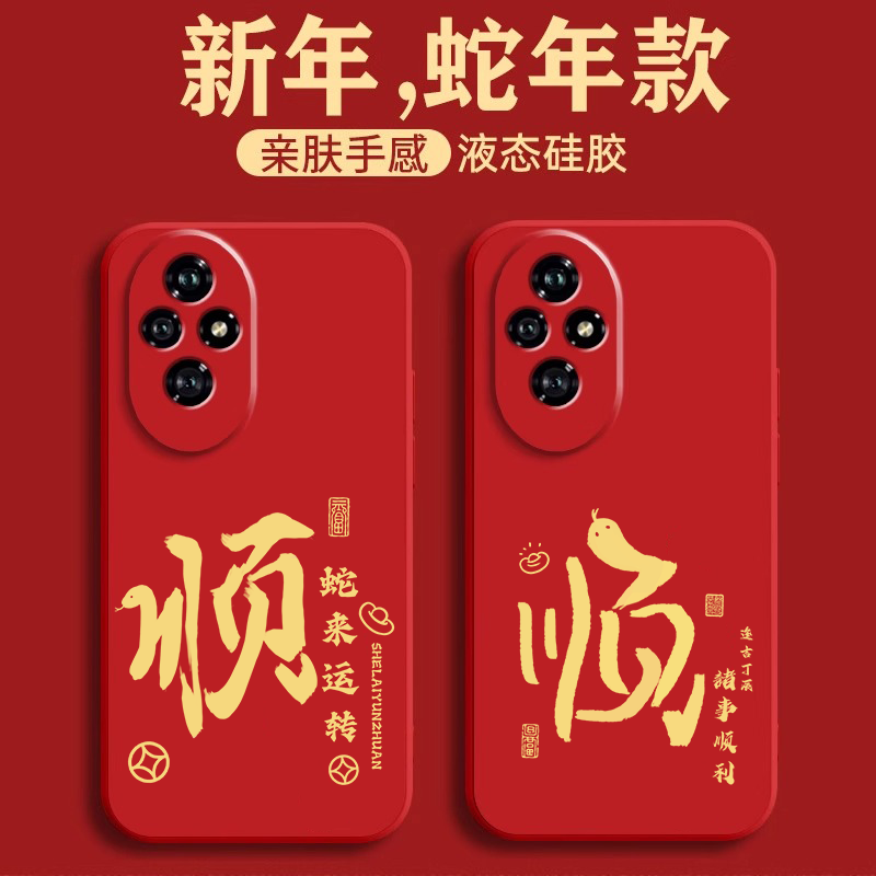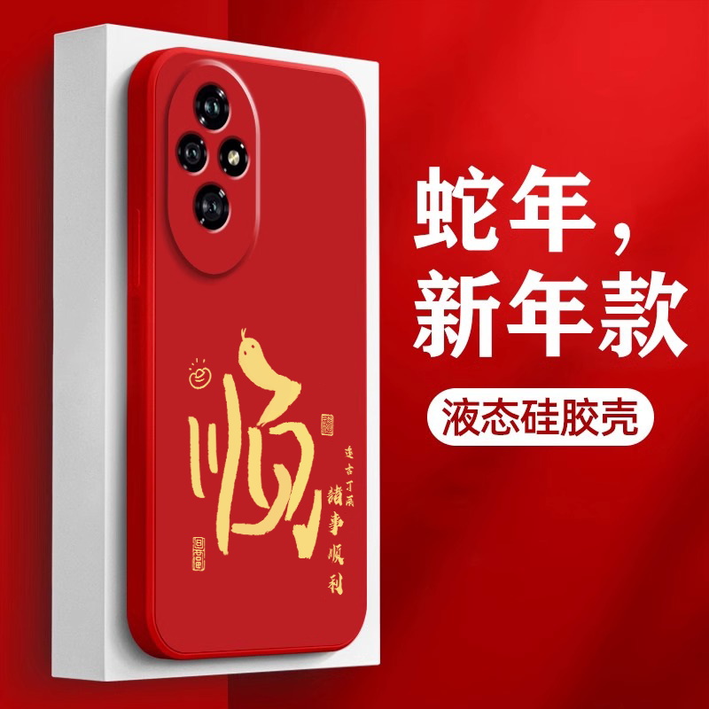 蛇来运转适用荣耀200手机壳荣耀magic7新年款100pro红色挂绳honor90液态硅胶5pro全包70高级60se防摔80保护套