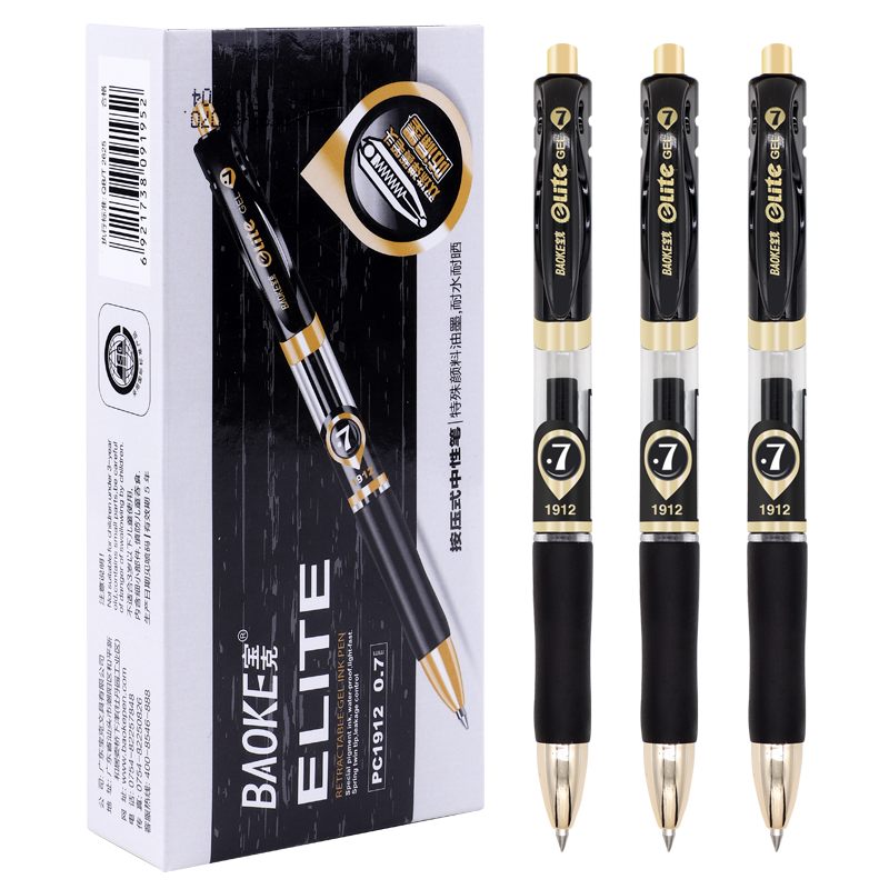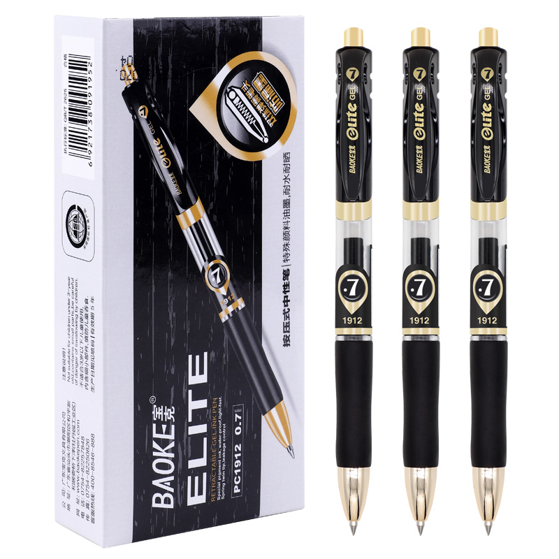 宝克按动中性笔0.7mm子弹头黑色0.5mm红色顺滑签字笔学生水性笔