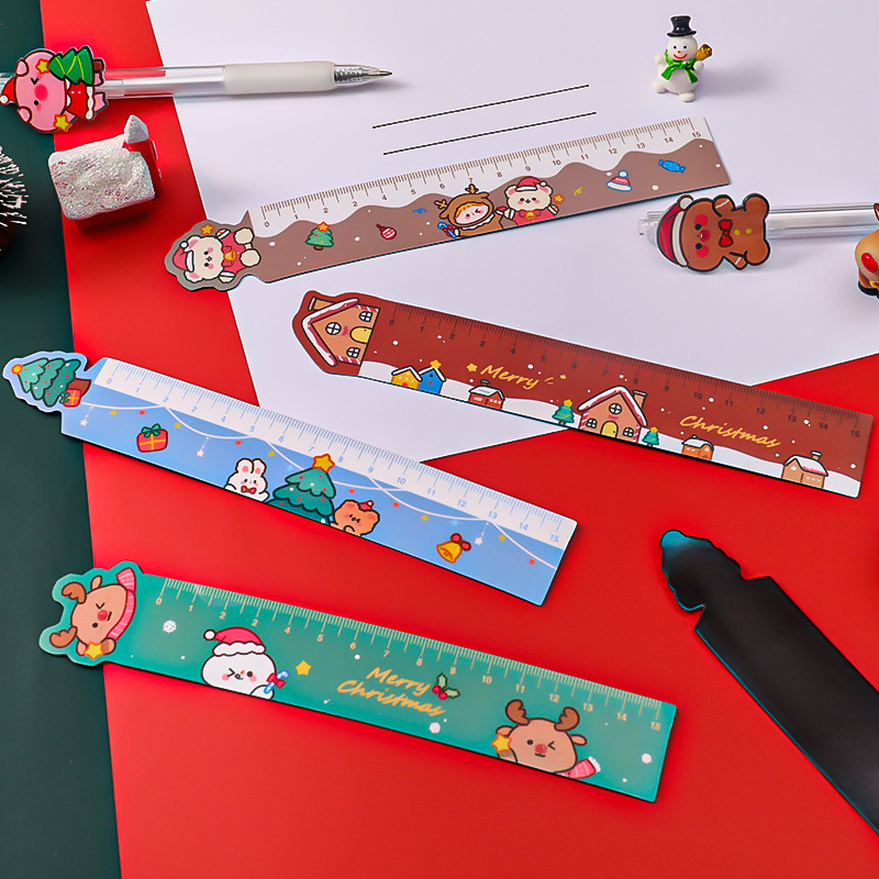 卡通圣诞磁性直尺可爱趣味异形软尺小学生绘图学习测量工具办公用15cm尺子多功能书签尺幼儿园儿童创意小礼品