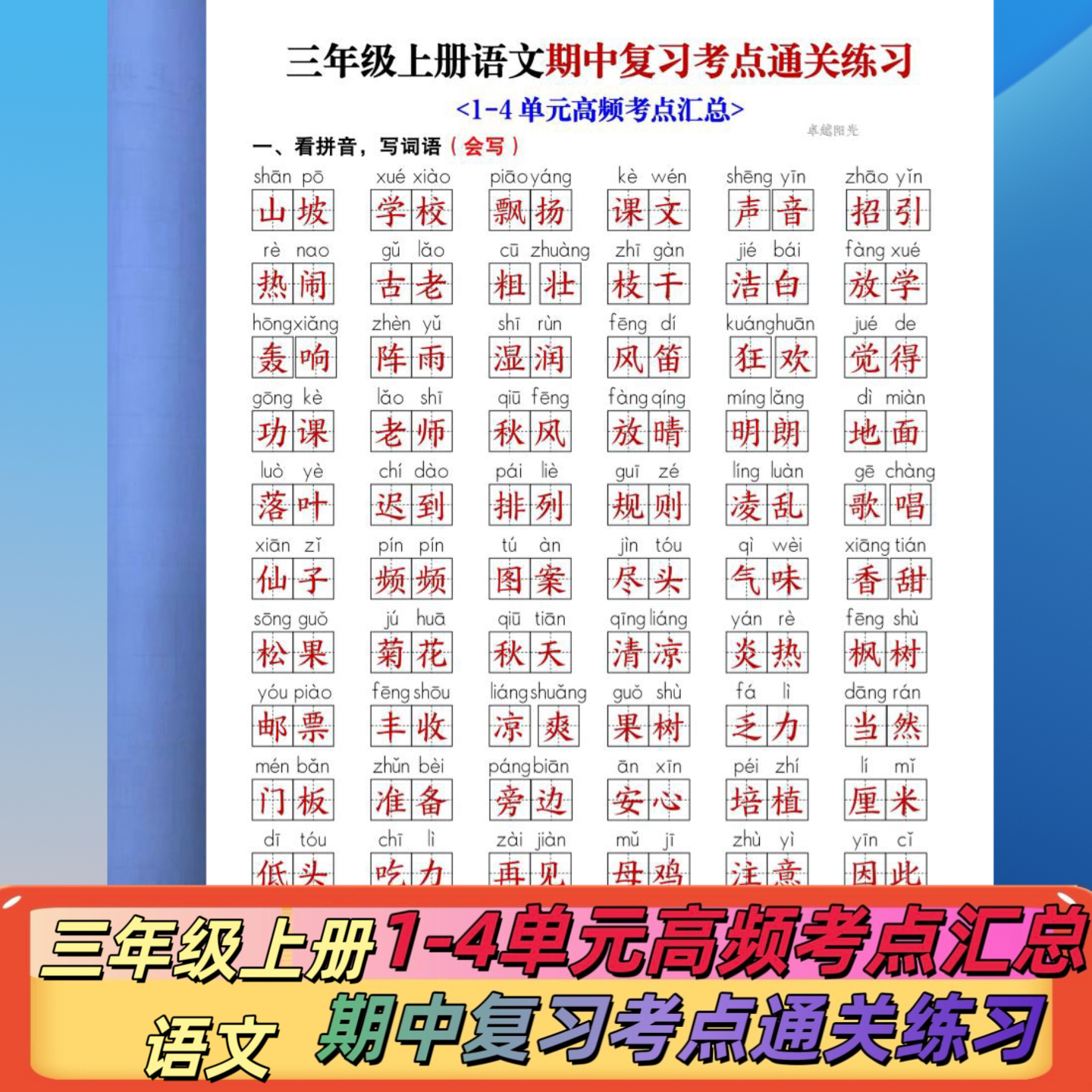 一二三四五六年级上册语文期中复习考点通关练习(含答案)