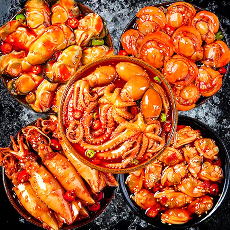 麻辣小海鲜罐头即食大罐装组合鲍鱼生蚝扇贝八爪鱼整箱年货下饭菜