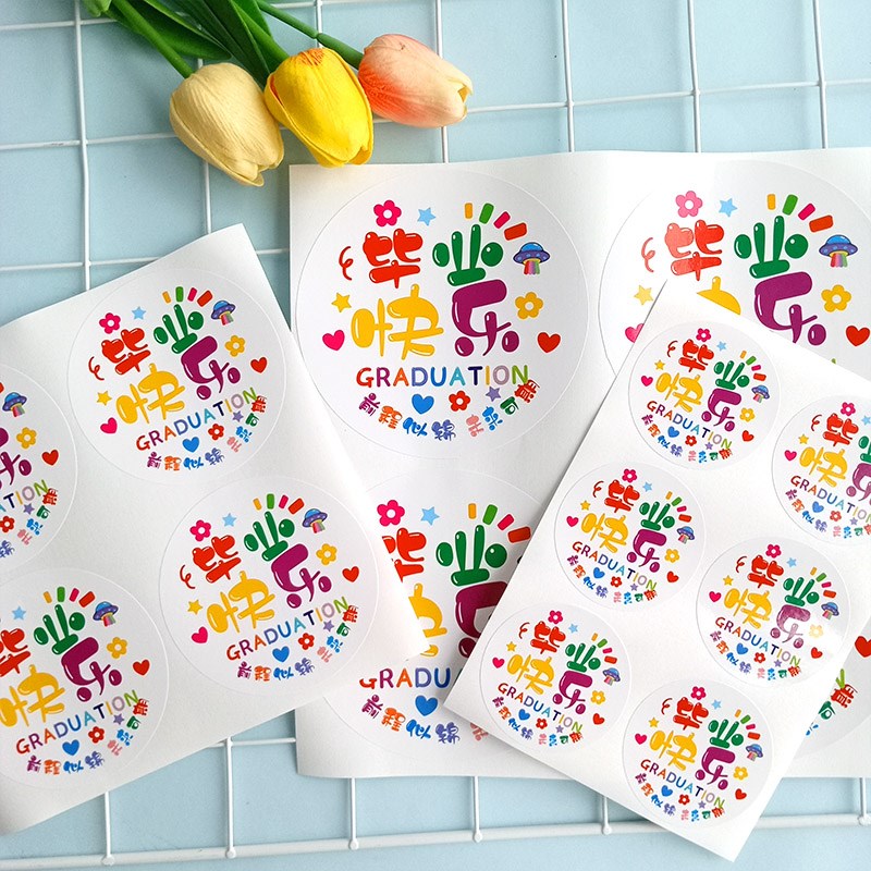 毕业快乐圆形贴纸前程似锦未来可期脸贴伴手礼物封口贴衣服装饰贴