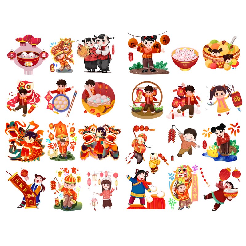 【已裁剪】农h历新年春节元宵节欢庆手帐素材装饰贴纸儿童卡通贴
