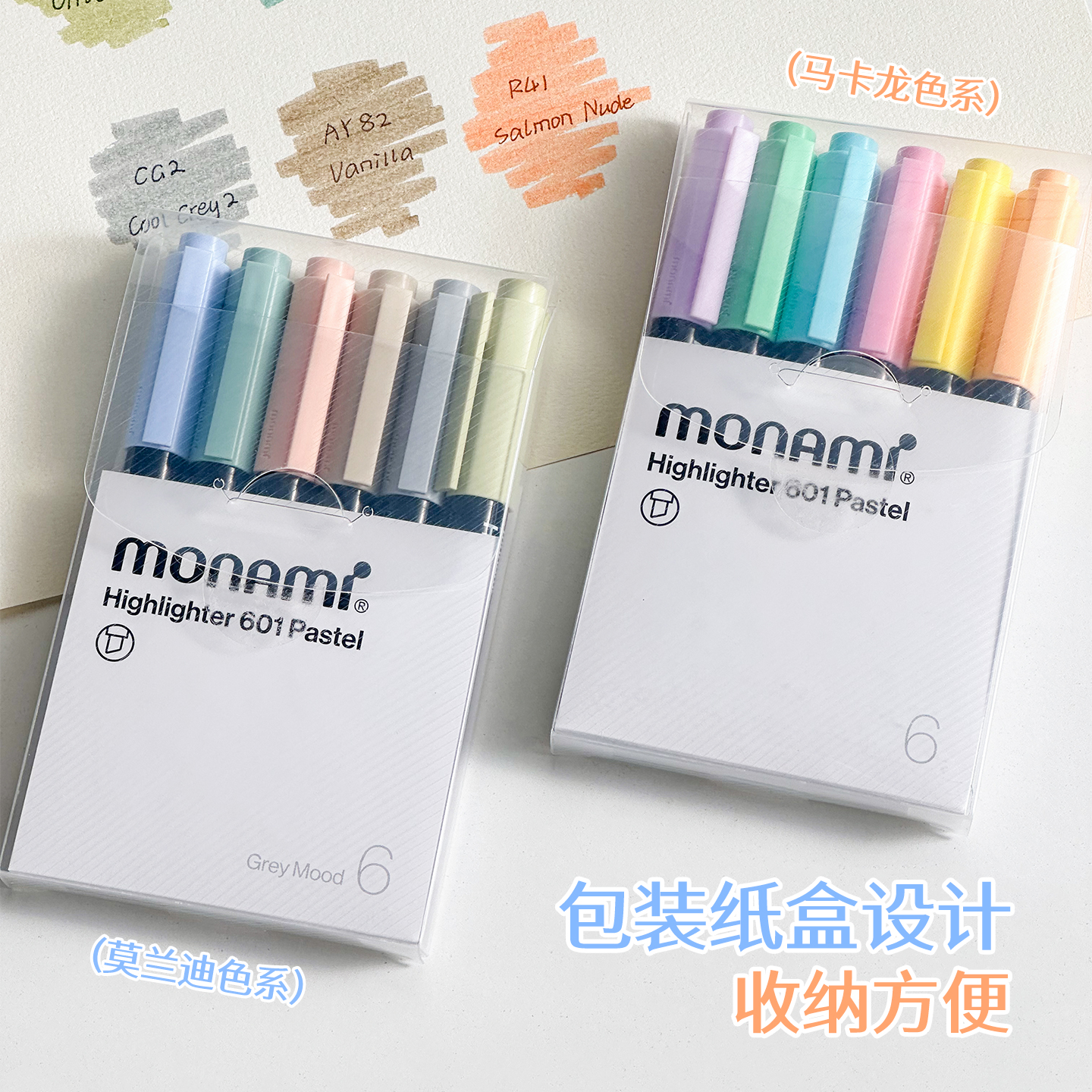 慕娜美monami莫兰迪色荧光笔小学初中生专用划重点高颜值标记笔K