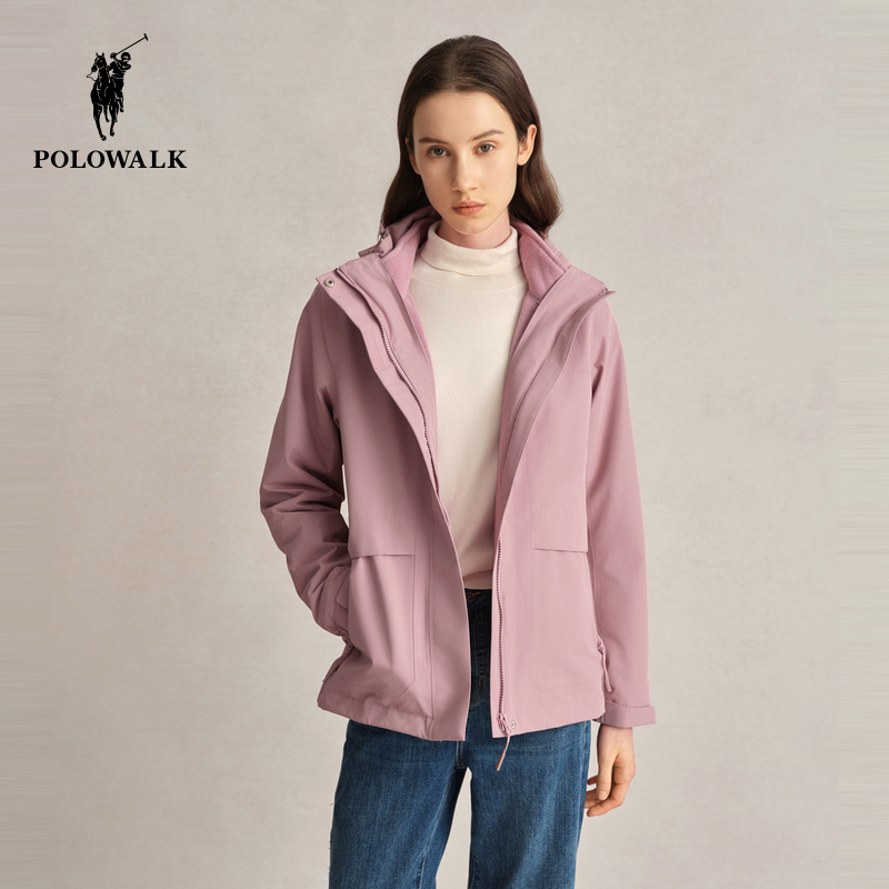 【一衣三穿】POLOWALK连帽短外套女士秋冬新款百搭上衣收腰夹克女
